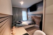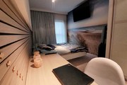 Sypialnia ok 15m2 od strony południowej. Na jednej ze ścian fototapeta, szafa Komandora, meble robione na wymiar. Łazienka razem z Wc ( ok 6 m2 ), kabina prysznicowa, biały montaż firmy Catalano, dodatki Joop, na podłodze Porcelanosa, ściany ze szkła hartowanego z nadrukami. Ogrzewanie podłogowe. W przedpokoju zabudowana szafa. W cenie nieruchomości pozostaje zabudowa stała. Alarm, kamera i ogrzewanie sterowane przez internet.