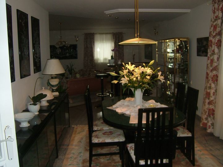 Na parterze hall, przedpokój, 5 sypailni , dwie łazienki , przestronny salon z kominkiem z wyjściem na taras, barkiem , jadalnia i kuchnia.